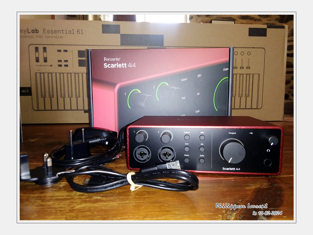 Cela va être un vrai challenge pour moi car je vais devoir tout apprendre. Ma première commande se compose de l’interface audio Focusrite Scarlett 4i4 4th Generation, du clavier maître USB MIDI, Arturia KeyLab Essential 61 Mk3 et du casque studio beyerdynamic DT-770 Pro 80 Ohm.