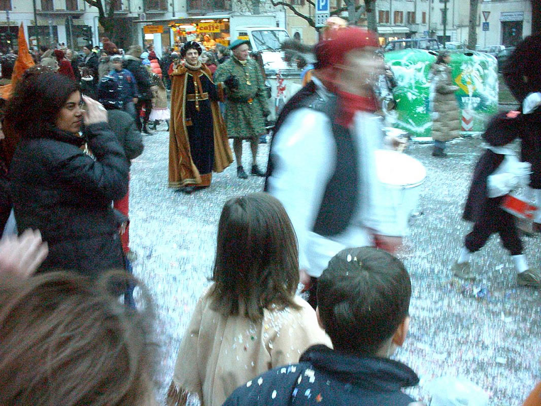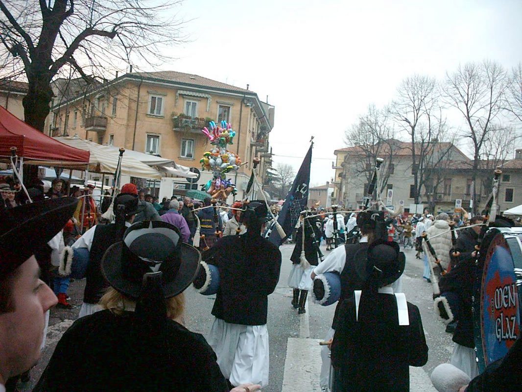 Carnaval de Vérone (Italie) 37100![]() Le carnaval de Vérone en Italie aussi appelé Bacanal del Gnoco. Site internet de la ville de Vérone. Vérone c’est la ville de Roméo et Juliette et du célèbre balcon de la « Casa di Giulietta ». Il y a aussi de belles arènes dont je n’ai aperçu que l’extérieur en passant à coté pendant le défilé. Un défilé complétement fou où les jeunes italiens emmitouflés dans des sacs poubelle se balancent des œufs et de la mousse à raser. Ca craignait bien pour les costumes bretons, il fallait faire attention. Après le carnaval nous sommes retourné (manger ?) dormir à l’hôtel San Vito. Lançon-Provence 13680![]() Lançon-Provence est donné pour être à 681 km de San Vito Di Negrar par l’autoroute A8 et 7 heures 22 de trajet. Nous devons joué le soir à Lançon certainement vers 20h30 ou 21 heures. Nous étions attendu avant pour manger. C’était sans compter sur la météo qui va nous jouer un drôle de tour. Le trajet a été interminable et froid. Nous avons été retardé et bloqué par la neige. Puisqu’il n’était pas prévu de passer tant de temps sur la route, le chauffeur du car a certainement été contraint de respecter ses obligations de temps de pose. Nous sommes arrivés (dans mon souvenir) très tard. Nous avions froid et faim. Nous avons mangé et comme du public nous avait attendu (ainsi que tous les bénévoles), nous avons fait notre prestation. Quelle journée ! Le lendemain nous avions un petit défilé en compagnie des majorettes et de quelques chars. Fin de tournéeToutes sorties du Bagad Men Glaz se termine de la même manière, souvent des heures de car. Cette fois nous ferons 850 km, soit environ 8 heures 30 sans compter les arrêts. |