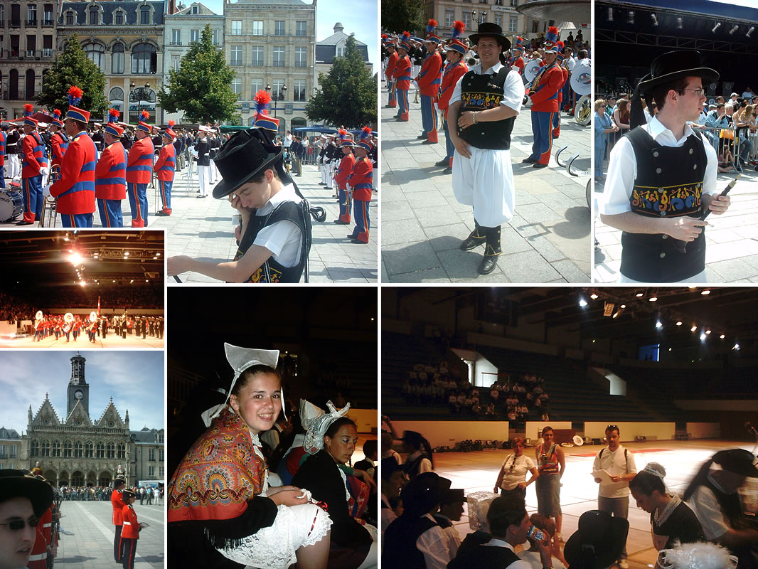 Lens 62300Samedi 19 juin et dimanche 20 juin 2004. Le samedi nous avons défilé dans les rues de Lens en compagnie d’autres bagadoù, pipe band et les Gilles de Binche. Le samedi soir nous avons assisté au concert en plein air gratuit de Tri Yann. Le dimanche matin nous avons fait une petite prestation dans un ÉHPAD et l’après midi nous avons à nouveau défilé dans Lens. |